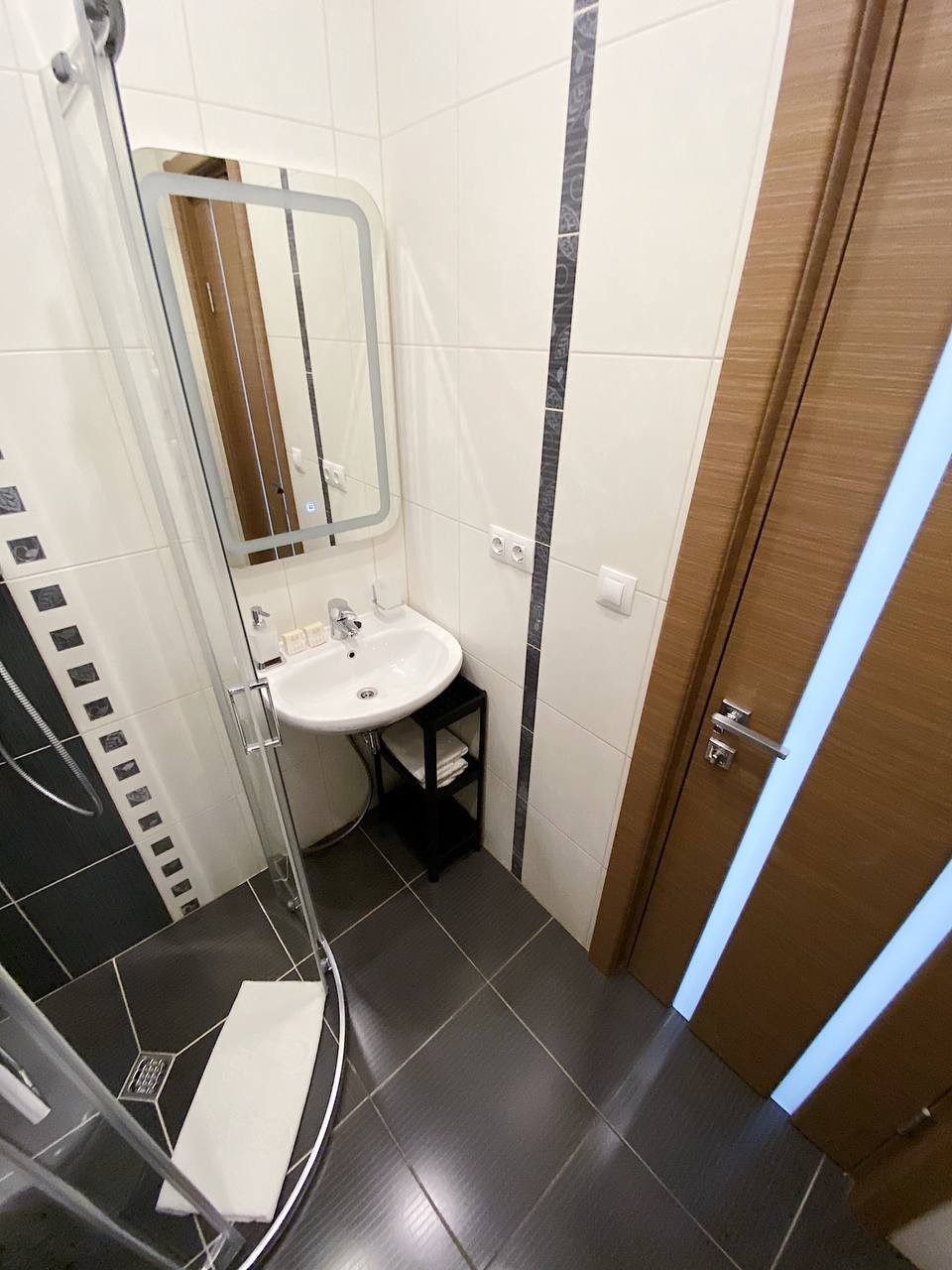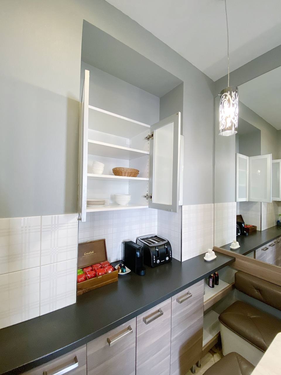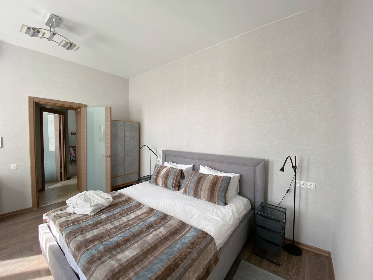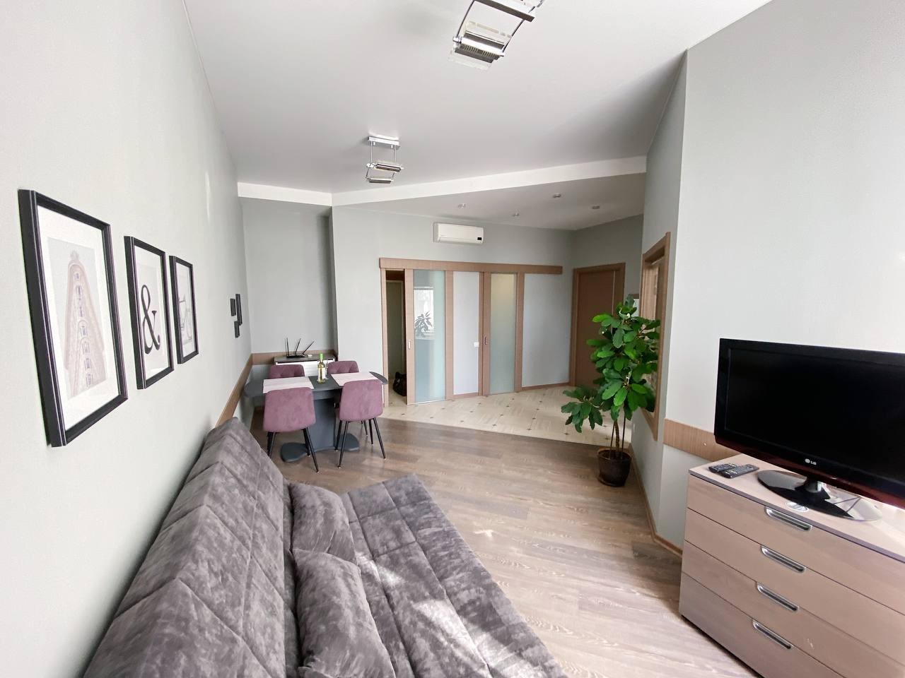 Современные апартаменты с 1 спальней, кабинетом и гостиной открыты в апреле 2021 года. Апартаменты подойдут для размещения 5 гостей: спальня оборудована двуспальной кроватью, в небольшом кабинете есть кресло-кровать, а в гостиной раскладывается двуспальный диван. Апартаменты расположены в одном подъезде с нашими гостевыми комнатами. Здесь часто останавливаются семьи, а также гости, выбирающие варианты размещения повышенной комфортности. В подъезде работает круглосуточная служба охраны.