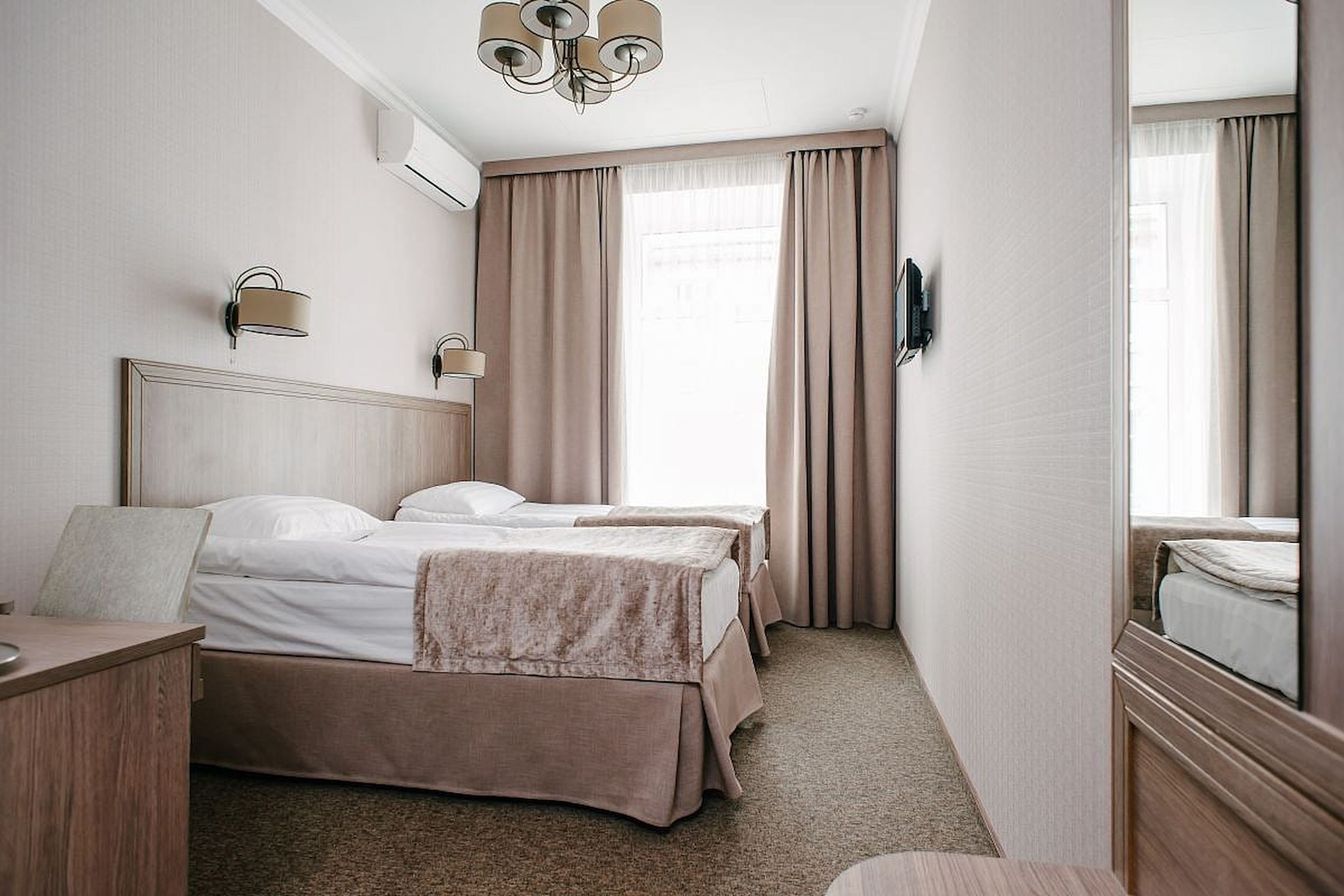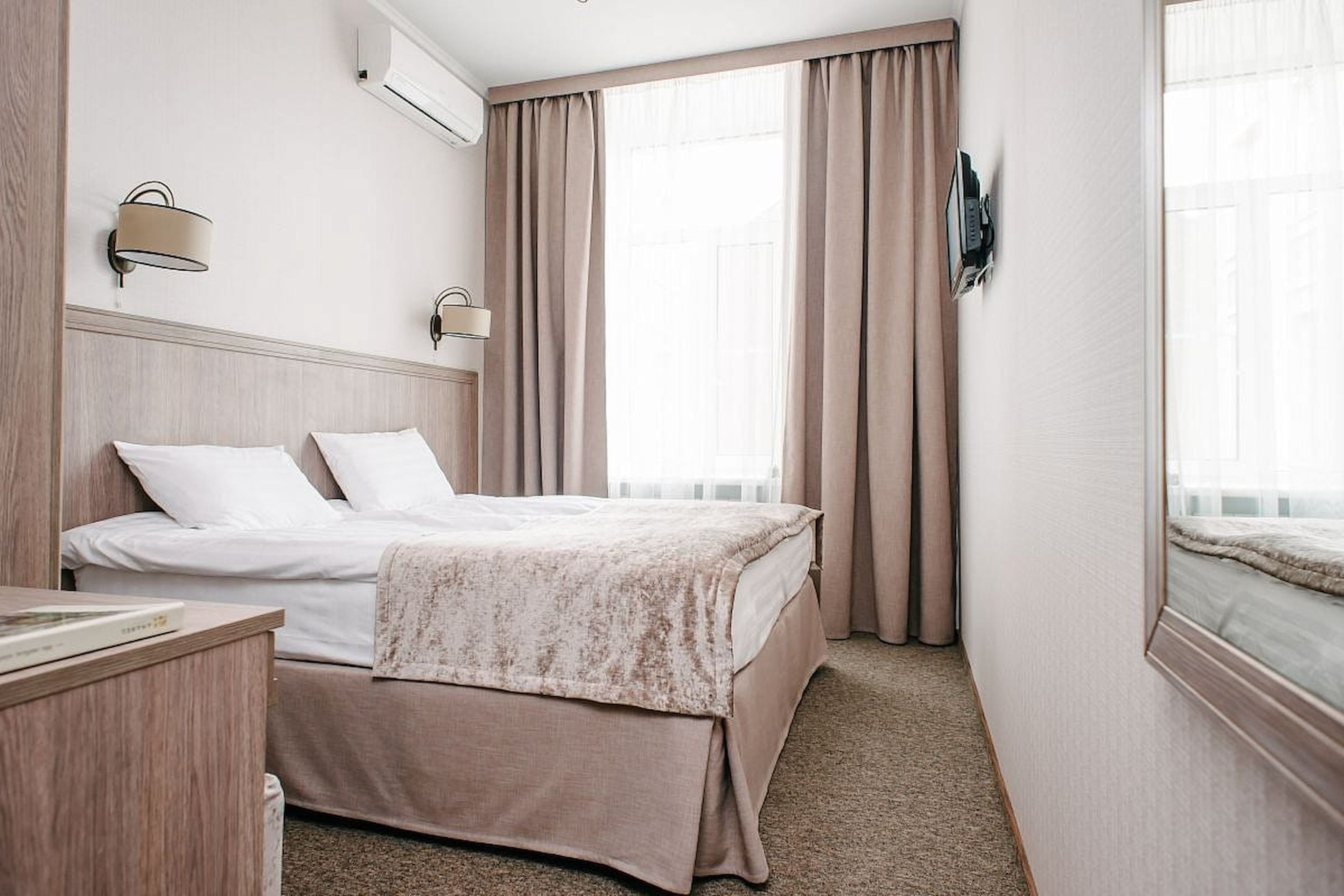 Комната подойдет под одноместное или двухместное проживание. Кровати сдвигаются по запросу. Есть санузел с душевой кабиной.